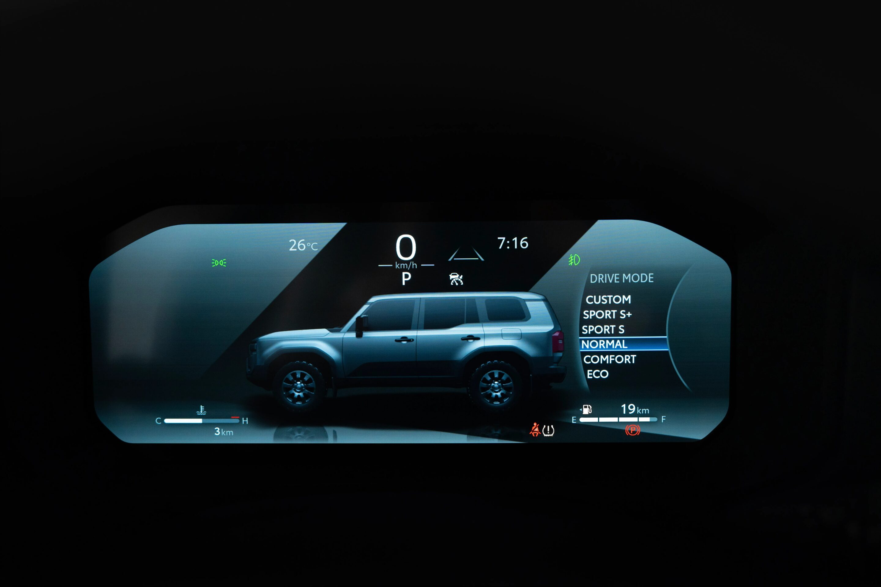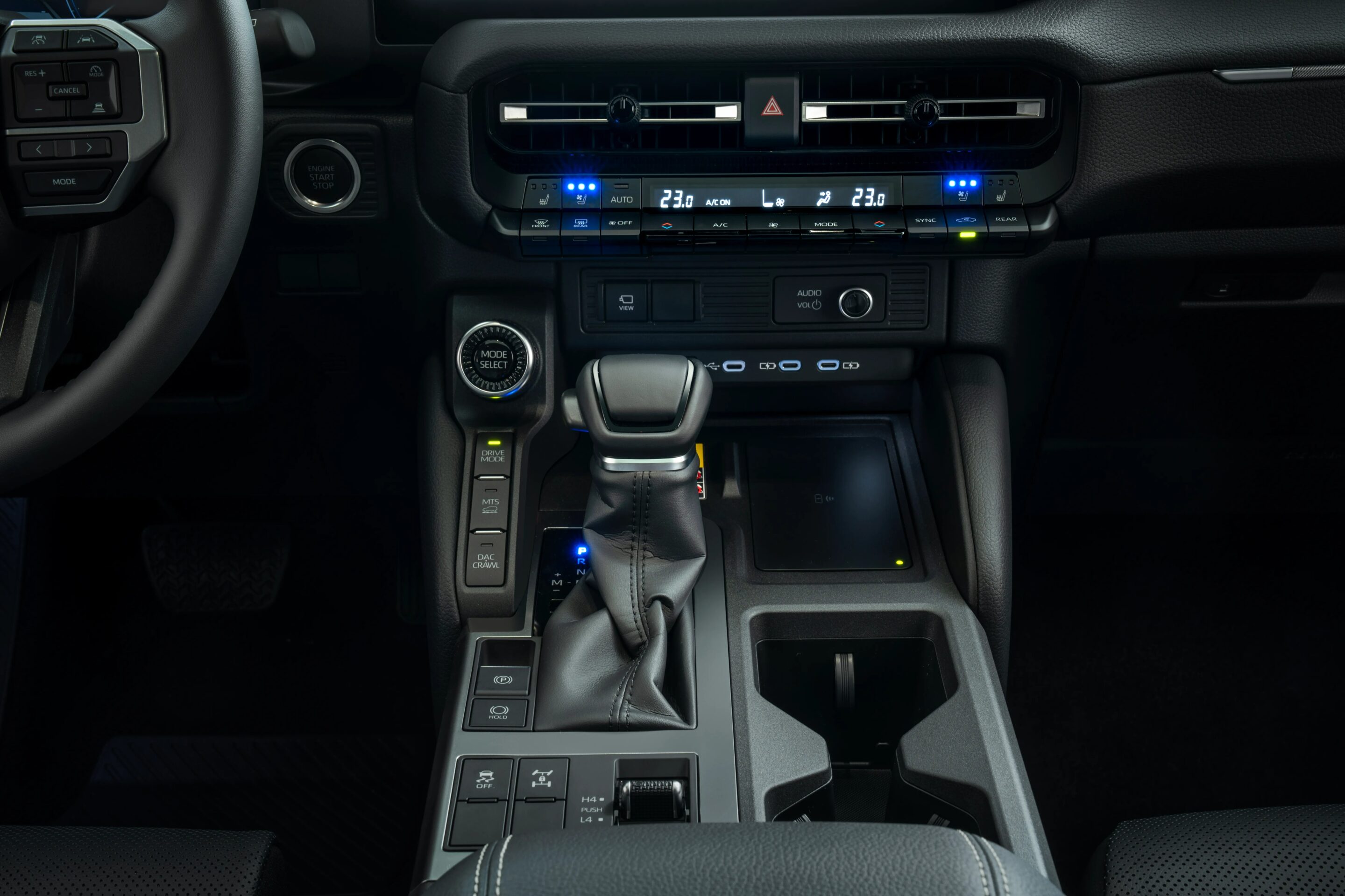 A sleek interior design gives you access to everything you need to control the Toyota Prado.